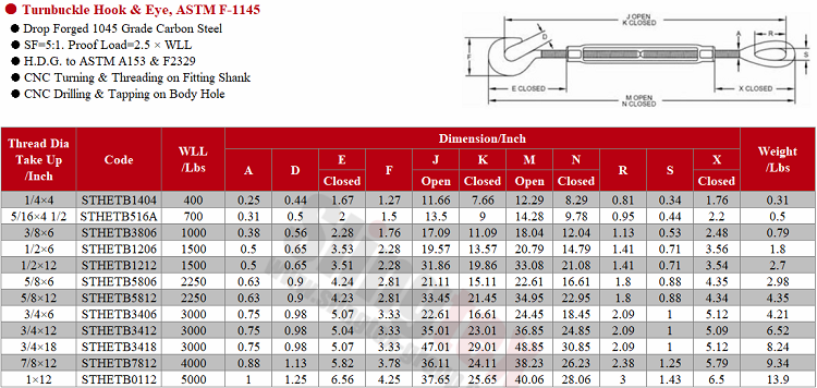 | Drop Forged Turnbuckle Hook & Eye, ASTM F-1145 |